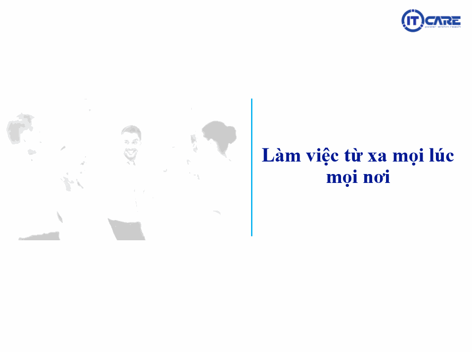 Không giới hạn việc bạn đang ở đâu, giải pháp làm việc tại nhà cho phép bạn truy cập vào nguồn dữ liệu của công ty mình, giải pháp của chúng tôi sẵn sàng đáp ứng nhu cầu của bạn tại thời điểm bạn cần - bất kể bạn đang ở đâu. Làm việc tại nhà giúp giảm thiểu rủi ro do dịch Covid-19 và đảm bảo hoạt động kinh doanh được liên tục.